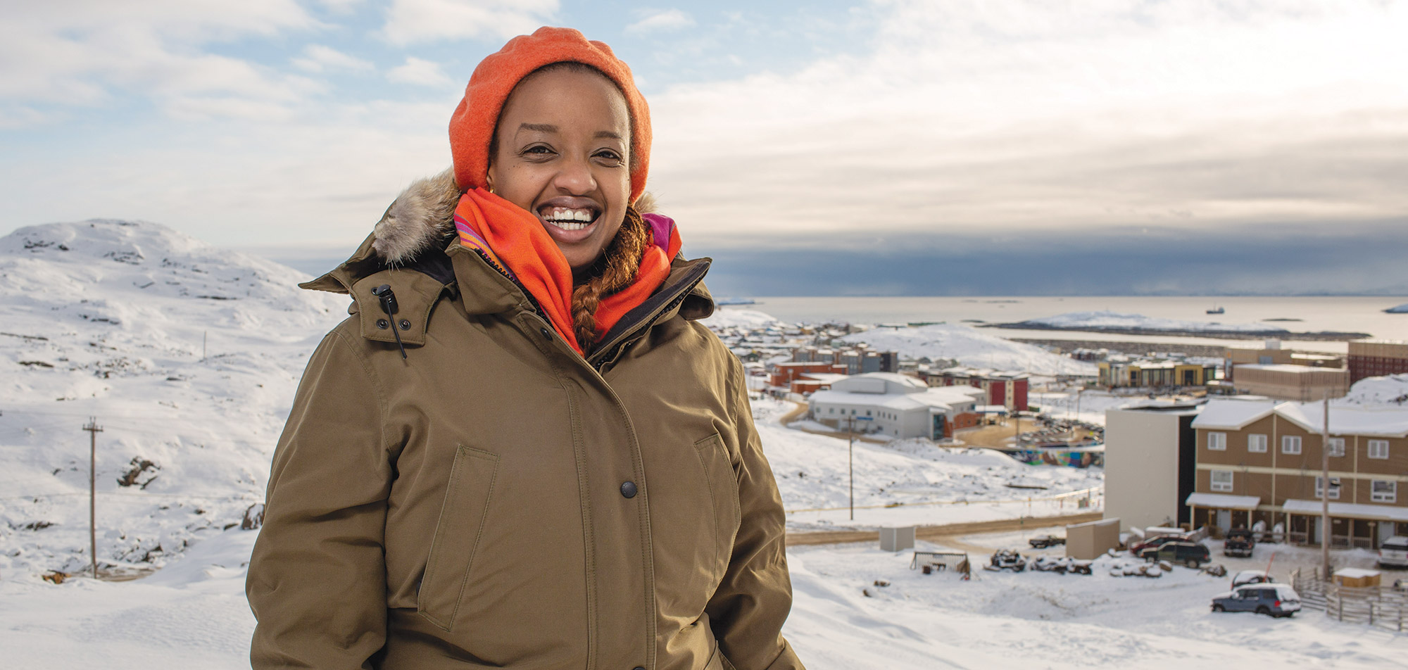 Je suis arrivée à Iqaluit en juillet 2018 en provenance d’Ottawa. C’est un peu par pur hasard que je suis arrivée à Iqaluit. Je venais de finir un contrat avec une ONG canadienne à l’international et j’étais à la recherche de nouvelles opportunités. Je me rappelle que je voulais vraiment travailler dans mon domaine d’études et continuer à faire de la gestion de projets. Donc dès que l’opportunité s’est présentée, je n’ai pas hésité à faire le grand saut. J’ai commencé à travailler avec un organisme communautaire de la place.